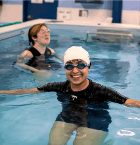 Your first class isn’t about swimming laps — it’s about comfort, breathing, and learning how the water supports you.